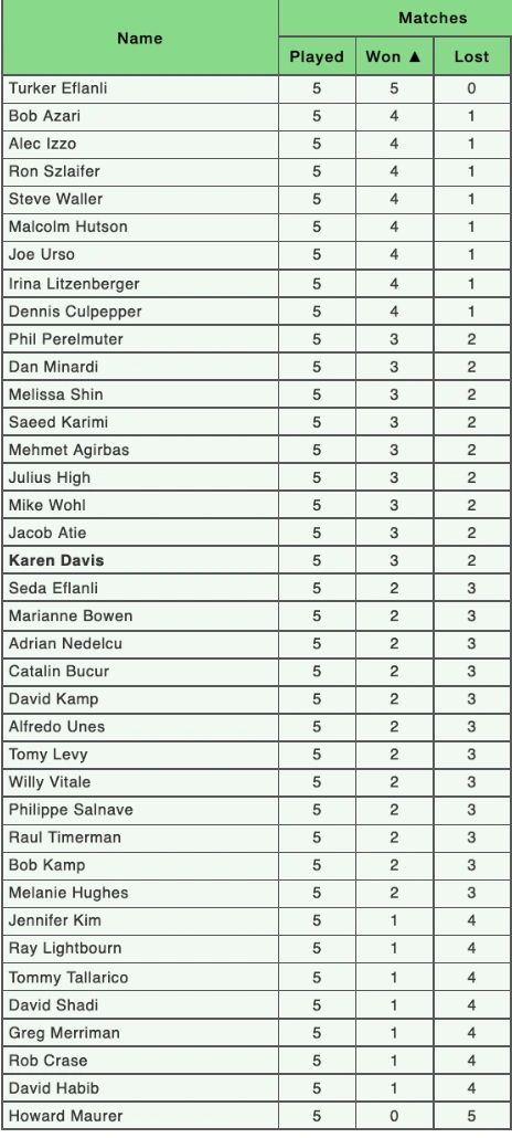 Gerry Tansey, Irina Litzenberger, Dennis Culpepper, and Alan Steffen go 4-1