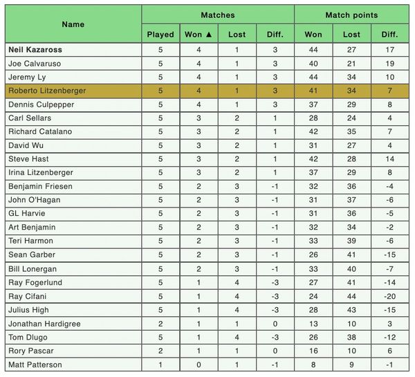 Gerry Tansey, Irina Litzenberger, Dennis Culpepper, and Alan Steffen go 4-1